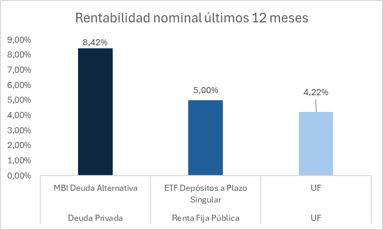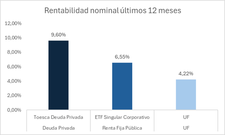 En los siguientes gráficos te mostramos como han rentado fondos de renta fija pública vs deuda privada en los últimos 12 meses