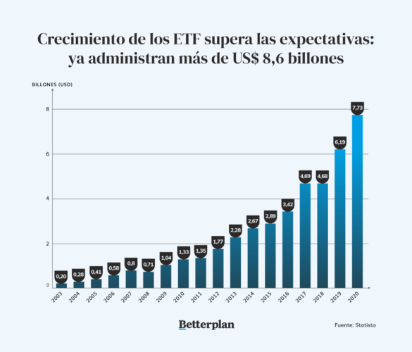 Infografías, NoticiasCrecimiento de los ETF supera las expectativas: ya administran más de US$ 8,6 billonesDurante el 2021, los ETF han seguido aumentando su participación en el mercado,